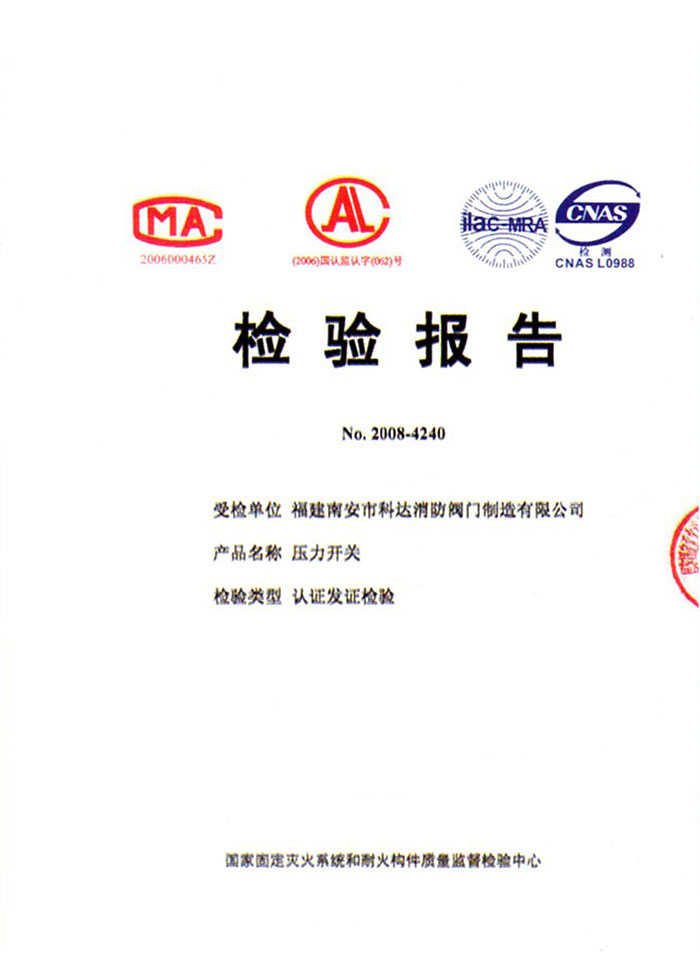 当前位置: 首页 » 资质荣誉 » 认证证书 » 检验报告