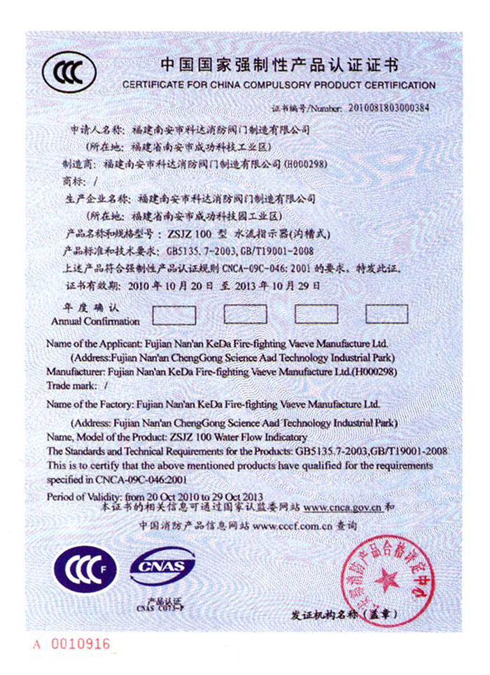 中国国家强制性产品认证证书