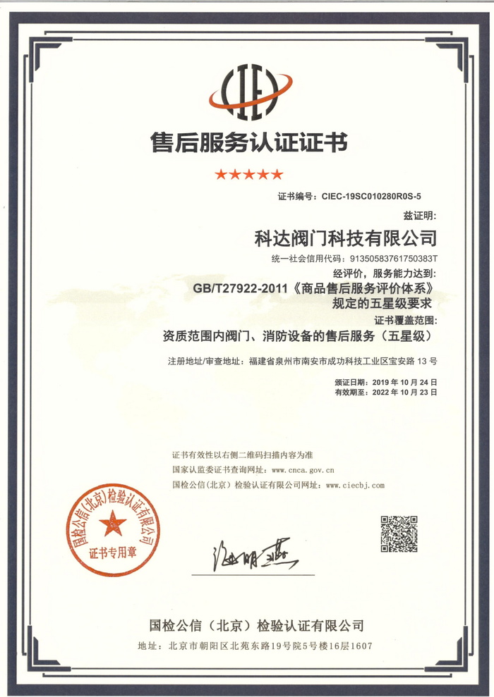 售后服务认证证书