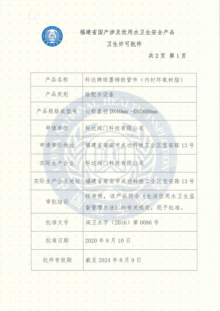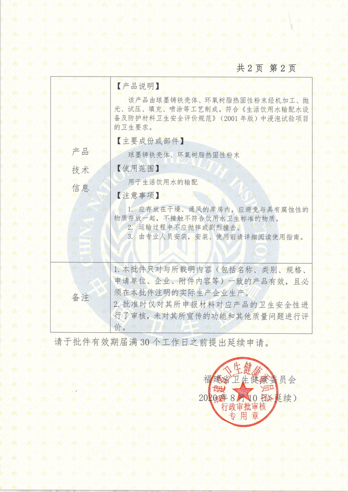 当前位置: 首页 » 资质荣誉 » 企业资质 » 福建省国产涉及饮用水卫生安全产品卫生许可批件